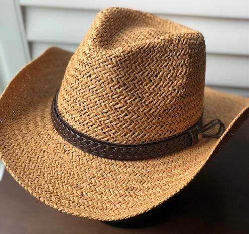 Straw Western Hat with Beaded Band – Unisex, One Size